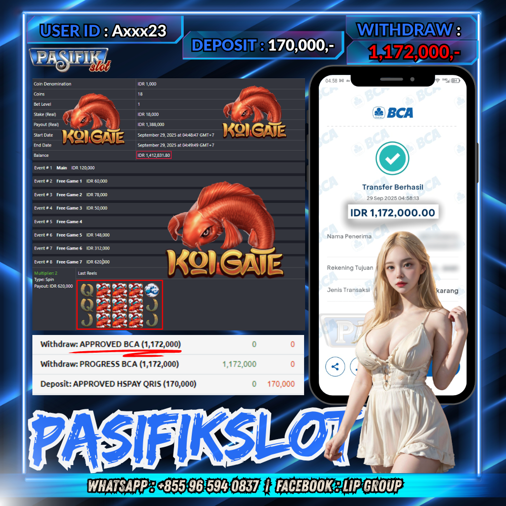 PASIFIKSLOT JACKPOT KOI GATE Rp.1,172,000,- LUNAS!