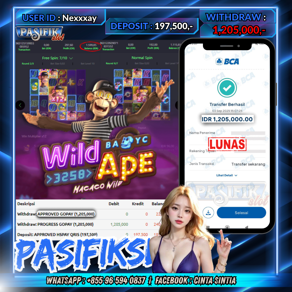 PASIFIKSLOT JACKPOT WILD APE Rp.1,205,000,- LUNAS!