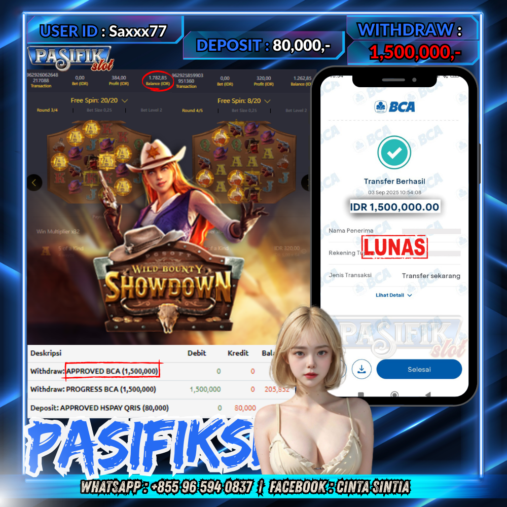 PASIFIKSLOT JACKPOT WILD BOUNTY SHOWDOWN Rp.1,500,000,- LUNAS!
