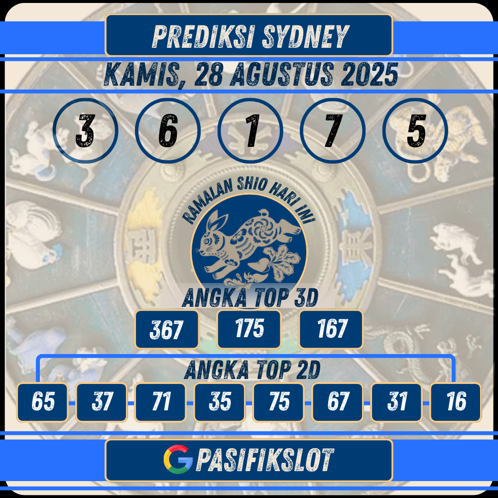PASIFIKSLOT | Selamat datang di halaman prediksi togel sydneypools terbaru untuk tanggal 28 Agustus 2025. Kami di Pasifikslot selalu berusaha memberikan prediksi angka jitu yang akurat dan terpercaya untuk membantu Anda meraih kemenangan maksimal. Dengan analisis data keluaran sebelumnya dan pola angka, kami menyajikan angka-angka terbaik untuk Anda gunakan sebagai referensi taruhan.